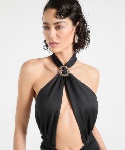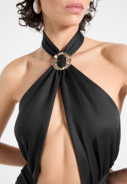 - Halter neckline secured with a silver hammered adjuster for a luxurious touch