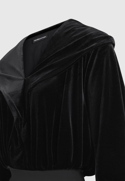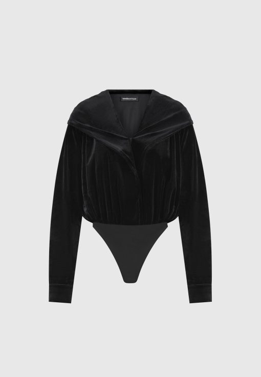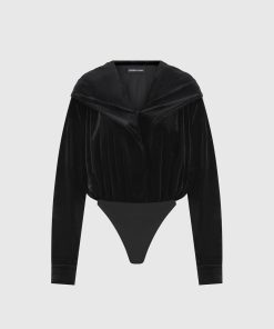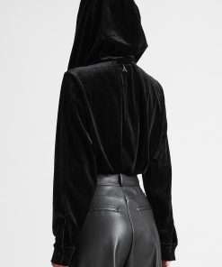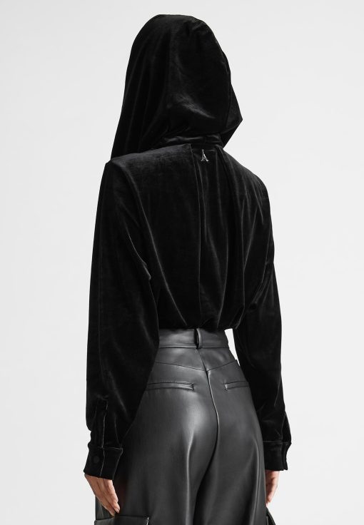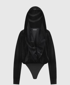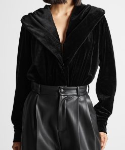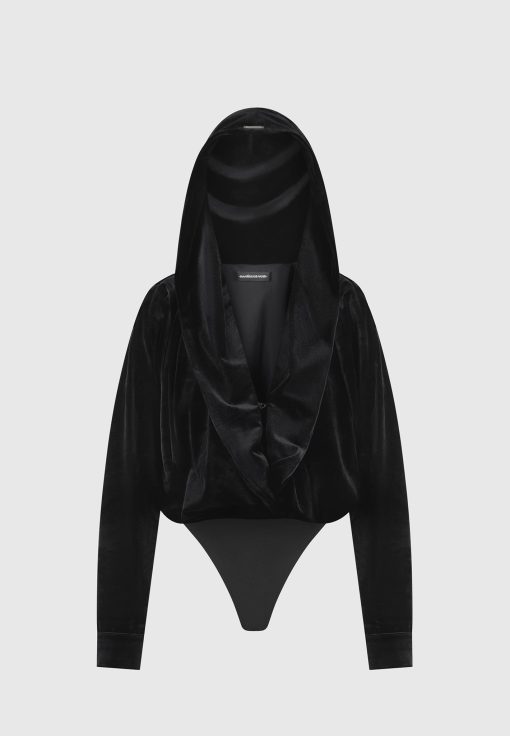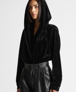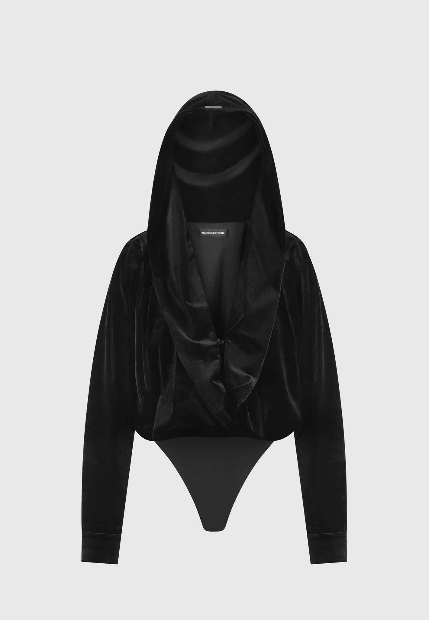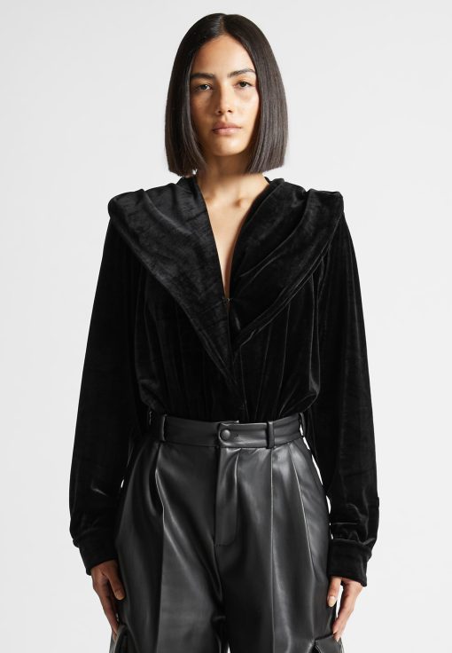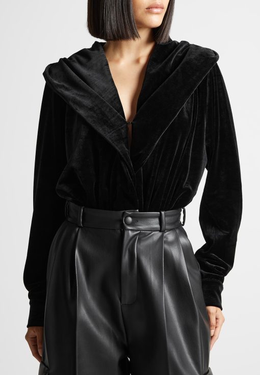 Manière De Voir Women’s Velour Hooded Bodysuit – Black | Black